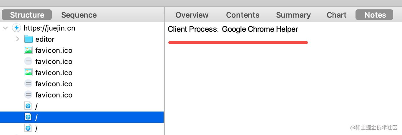 开启之后可以在 notes 看到发送请求的客户端进程: