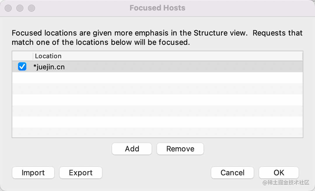 也可以通过 View > Focused Hosts 来设置关注的域名: