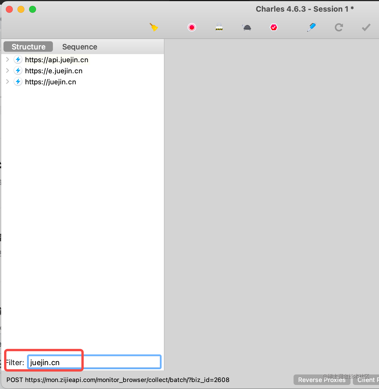 我们想找 juejin.cn 的请求的话可以过滤: