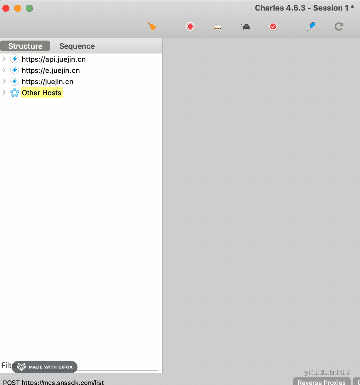 这样 charles 就会把其他的域名的请求折叠起来: