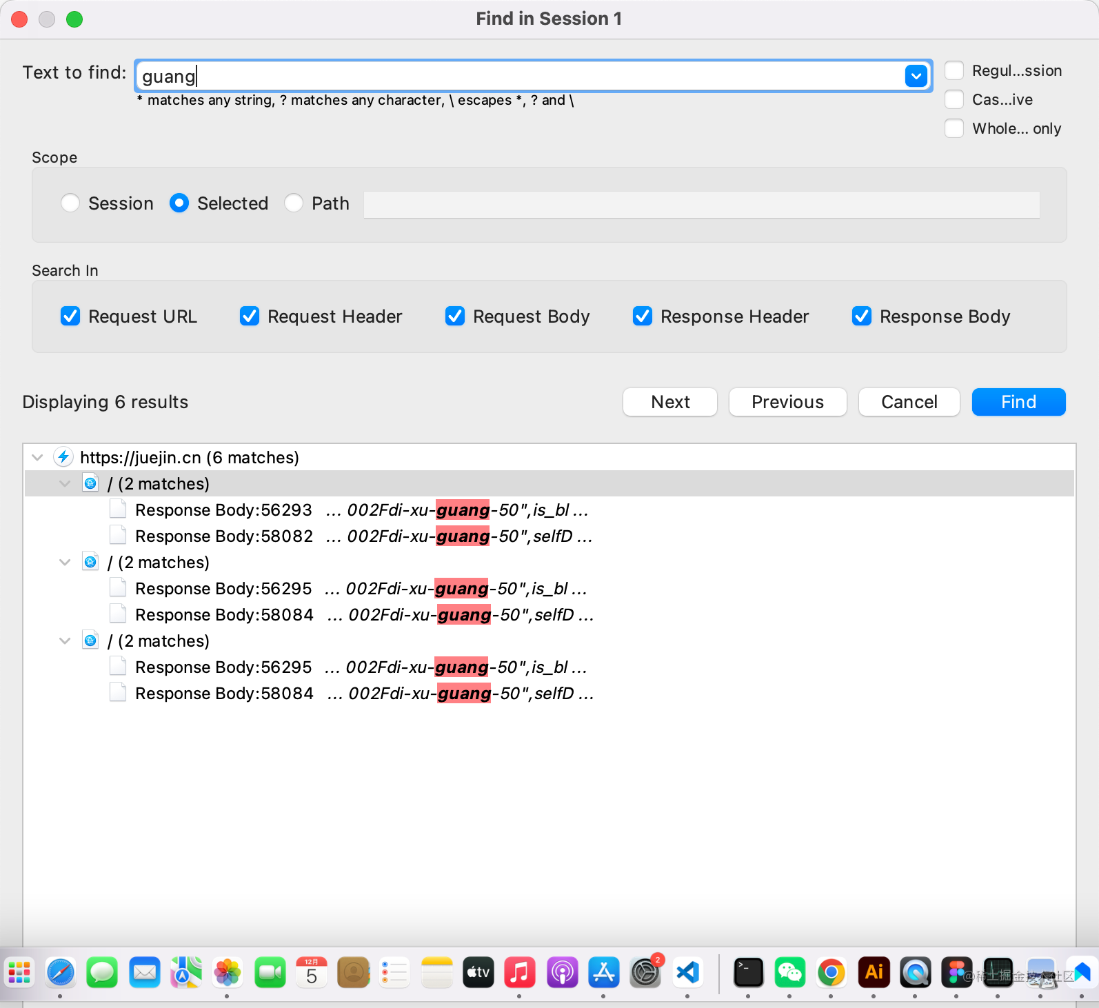 find 是搜索功能,可以在 session、选择的 url 或者某个 url 的请求里搜索。