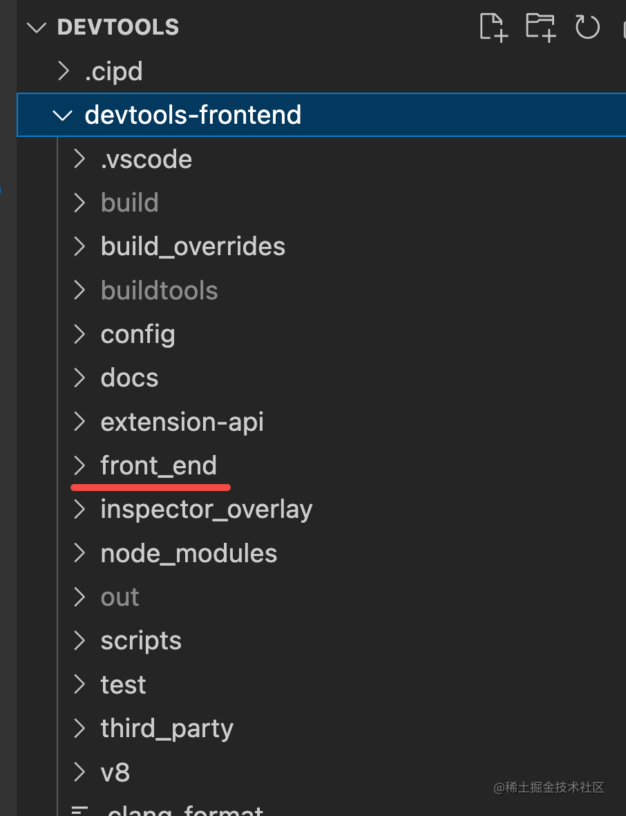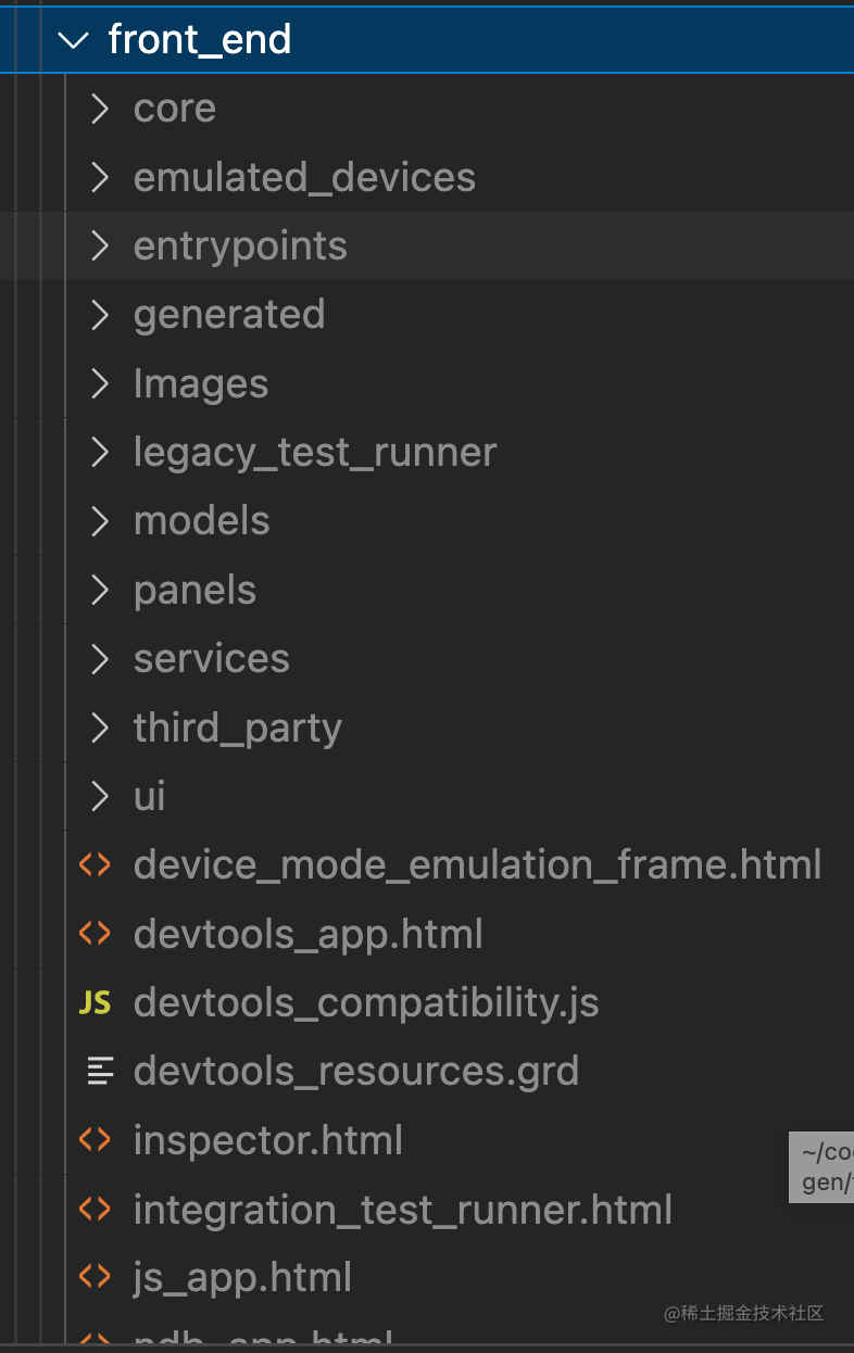 下载完之后,font_end 目录下就是 devtools 的前端代码: