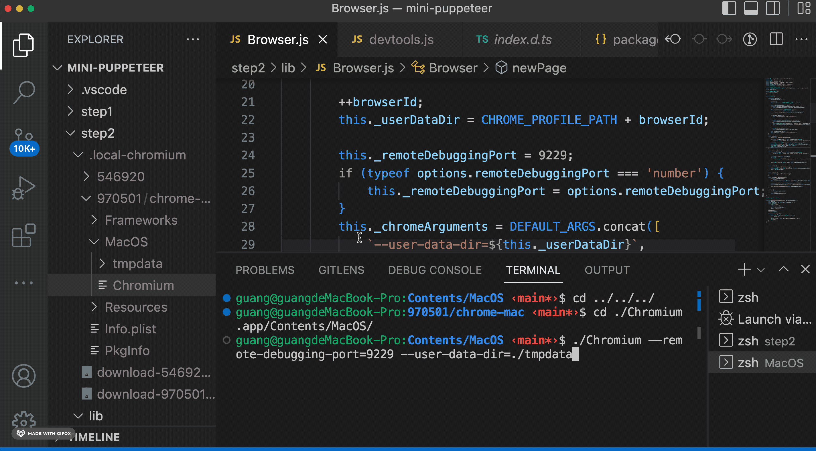 我们先处理下 chromium 的启动参数,也就是 user-data-dir、remote-debugging-port 等这些: