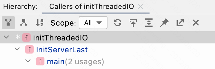 介绍完基础的数据结构之后,我们再来看 IO 多线程相关的初始化逻辑。在 Redis Server 启动的最后,会调用 initThreadedIO() 函数创建 IO 线程,调用关系链如下图所示: