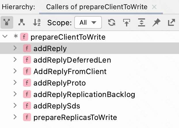 这就涉及到 addReply*() 方法底层调用到的另一个函数 —— prepareClientToWrite(),调用 prepareClientToWrite() 函数的方法如下图所示: