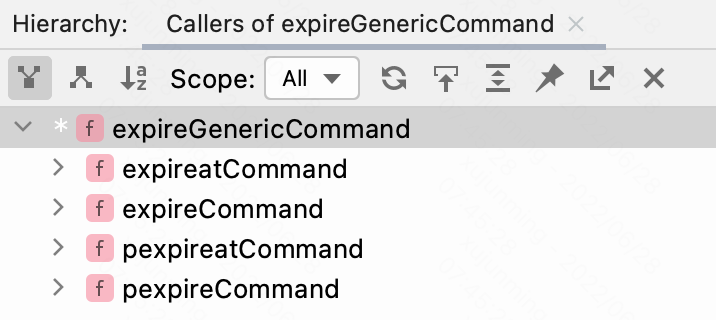 下图展示了 activeExpireCycle() 函数的调用栈: